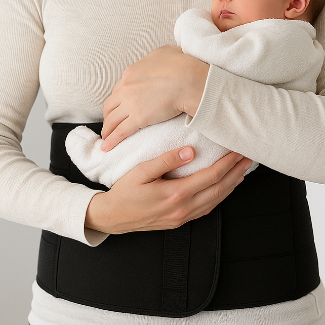 Gently compresses loose abdominal muscles and supports healing after a normal or C-section delivery.